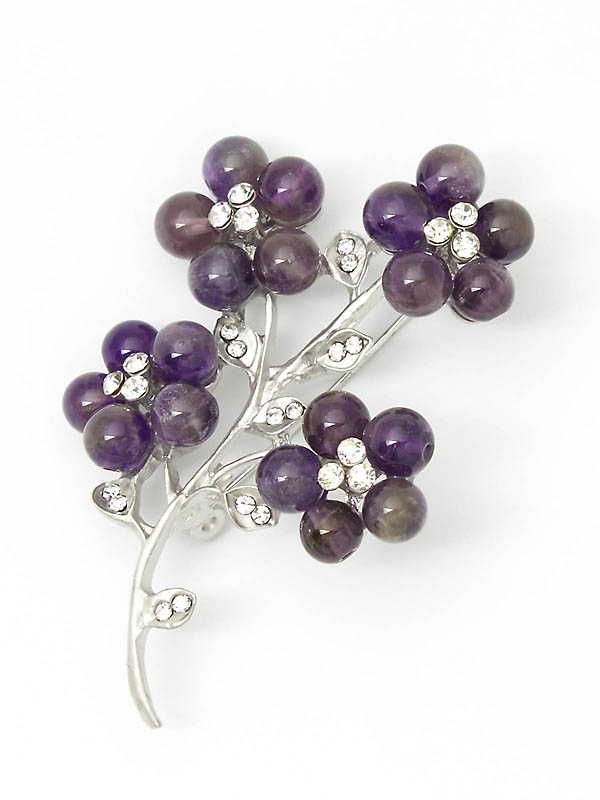 Брошь с аметистами. Оправа из бижутерного сплава украшена стразами. Размер броши 60*45 мм. Размер бусин 6 мм.