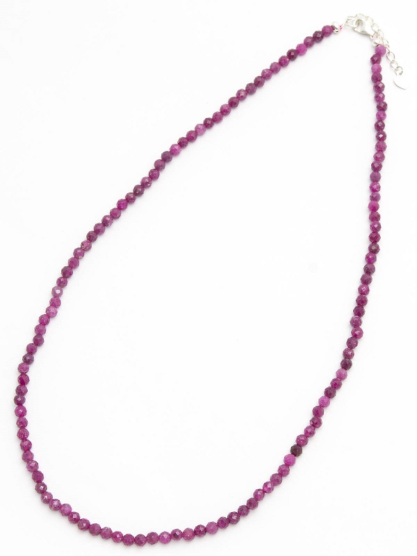 Бусы из корунда красного (рубина). Граненные бусины рубина d-3,5мм. Длина бус 40см. Застежка 925